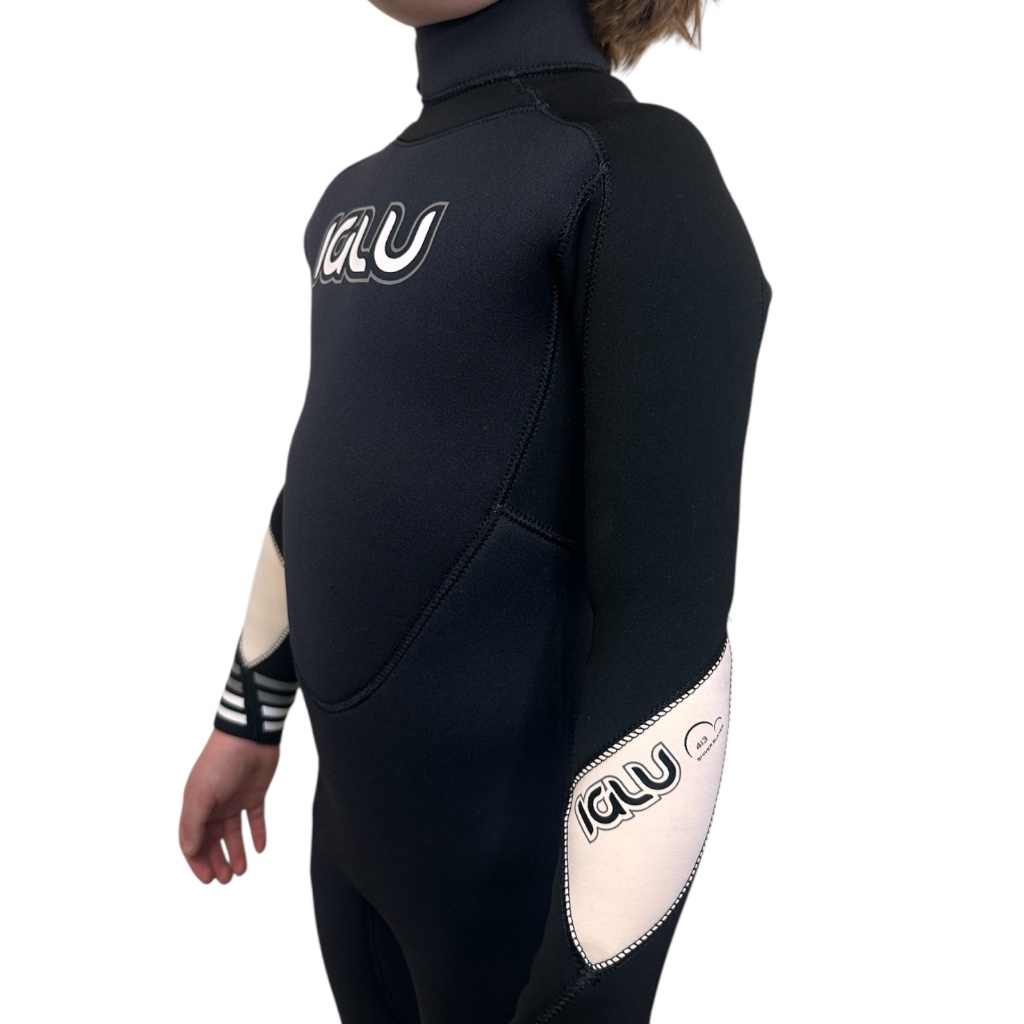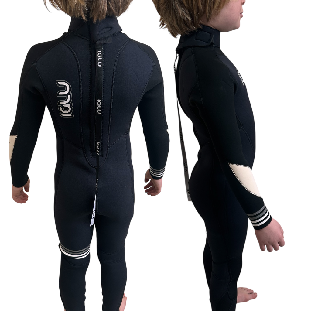 With all wetsuits the fit is key. A badly fitting wetsuit cannot do the job that it’s designed to do. Wetsuits must be worn tightly next to the skin to work properly. This is always a difficult factor with growing children. However with an IGLU …….GOOD NEWS!! you can cheat a little bit.